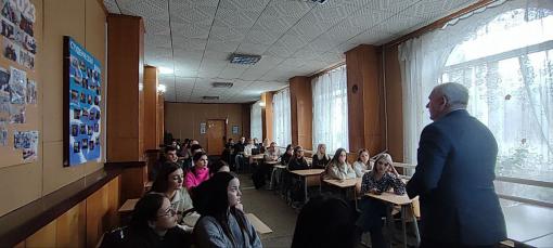 Состоялась встреча студентов с Председателем Совета Краснодонского муниципального округа Владимиром Шавлаем.